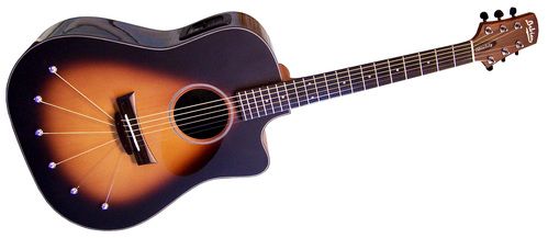 The Dreadnaught Cutaway. The natural evolution from Jeff Babicz's original prototype 'Identity'. Warm, rich tone from a solid Englemann Spruce top, along with the projection of a solid Rosewood back. Combine these tone woods with the versatility and performance of the 'Continually Adjustable Neck' and 'Lateral Compression Soundboard' and you have what Steven Wilson of Porcupine Tree calls "a truly remarkable instrument".
