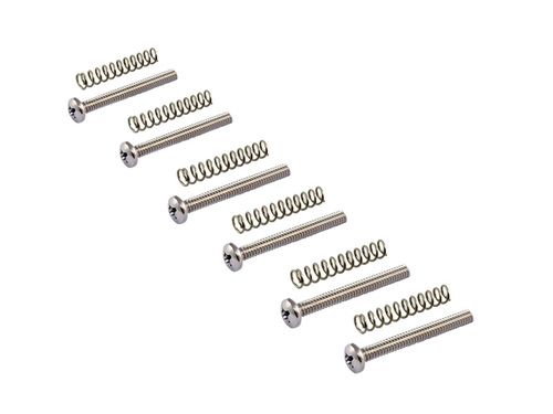 Includes six M3x5mm cone point screws (left) for locking your string height, and six M3x8mm oval point screws (right) for adjusting your string action height.