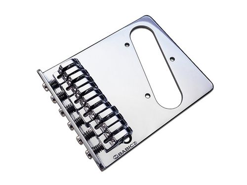 String through the body, 4 hole mount, Tele style single coil bridge. Includes bridge, mounting screws, instructions, and 1.5mm adjustment wrench. Weight: 6.4 oz.